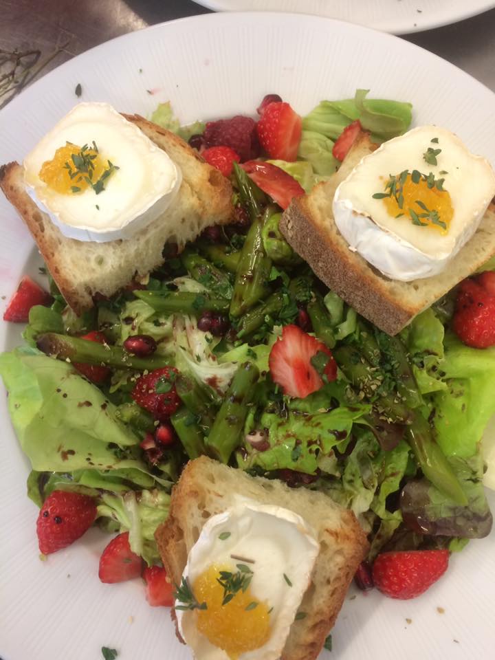 Salat mit warmem Ziegenkäse und frischen Früchten der Saison…